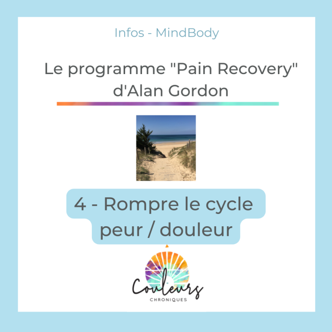 [vc_row][vc_column][vc_column_text]Voici la traduction française de la partie 4/21 du Programme « Pain Recovery ». Alan Gordon nous y explique que la peur est le carburant de la douleur. La compréhension que la douleur n’est pas dangereuse et l’indifférence aux résultats peut rompre ce cycle Peur – Douleur. La version originale de cette 4eme étape du programme est…