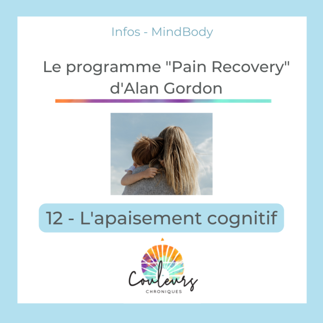 Alan Gordon nous présente l’Apaisement Cognitif, qui cherche à rassurer notre esprit, et apprendre à notre cerveau primitif qu’il est en sécurité. C’est une approche complémentaire du Somatic Tracking, qui passait lui plus par le corps . Nous avons vu (étape 7) qu’il y avait 3 carburants à la douleur : la peur, la pression…